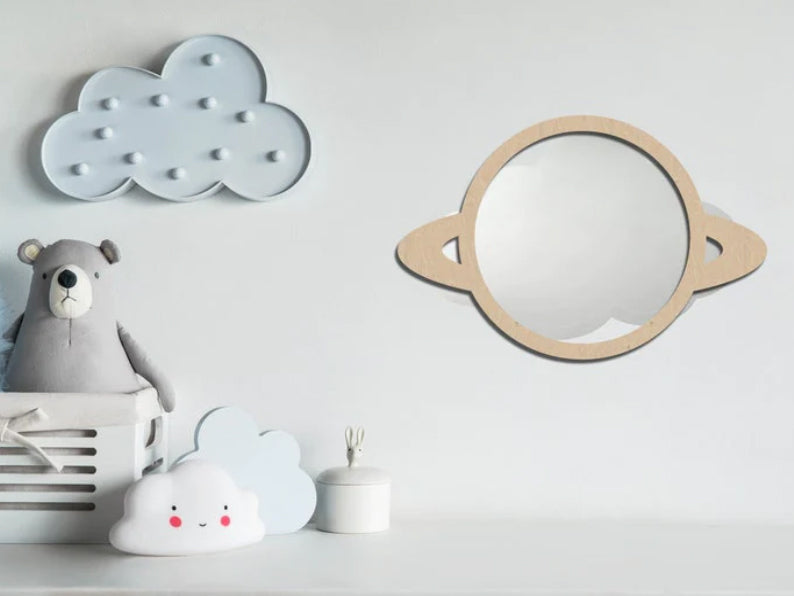 Planet Shaped Wooden Shatterproof Wall Mirror